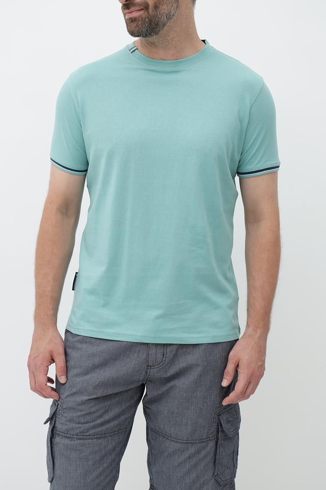 Мятная футболка Sea Barrier с короткий рукавом и контрастной полоской на горловине и рукавах. Изготовлена из 100% хлопка, обеспечивающего комфорт и воздухопроницаемость. Отличный выбор для повседневного образа. Состав: хлопок 100%