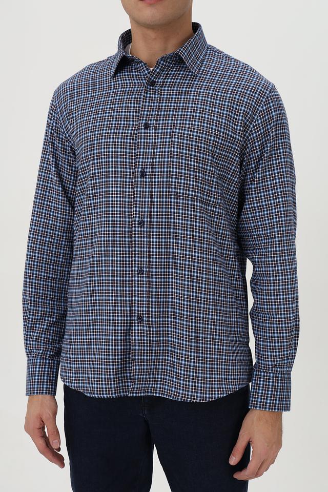 Мужская рубашка с длинным рукавом Sea Barrier синего цвета в клетку. Изготовлена из 100% хлопка, обеспечивающего комфорт и воздухопроницаемость. Классический крой для повседневного использования. Состав: хлопок 100%