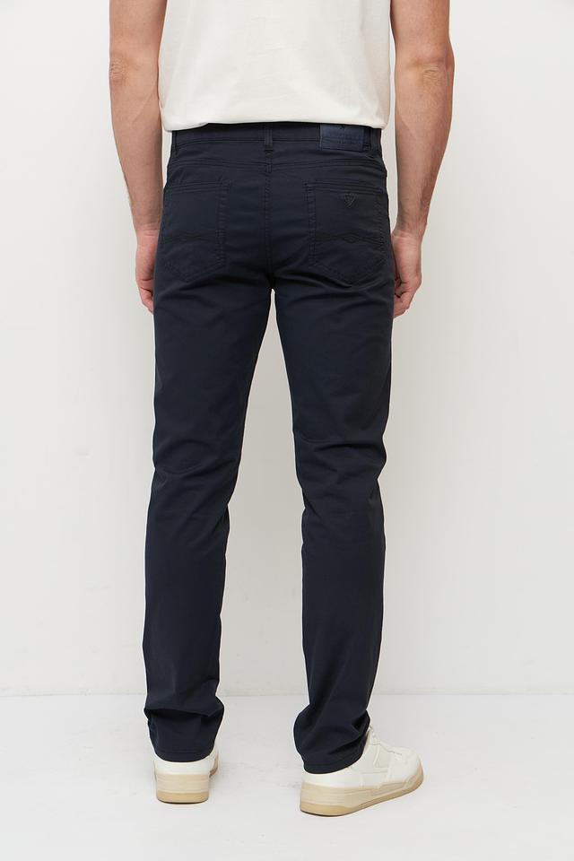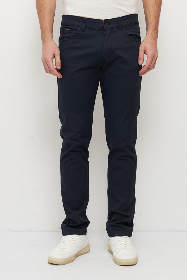 Брюки выполнены из высококачественного хлопка с добавлением эластана, что придает им мягкость, эластичность и износостойкость. Ткань приятна на ощупь и хорошо держит форму. Цвет брюк – насыщенный темно-синий, который легко сочетается с различными элементами гардероба.