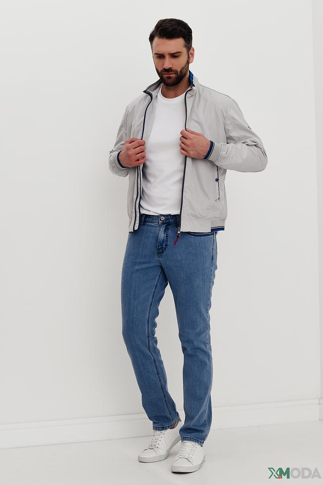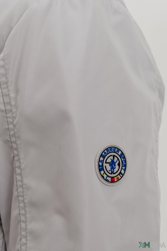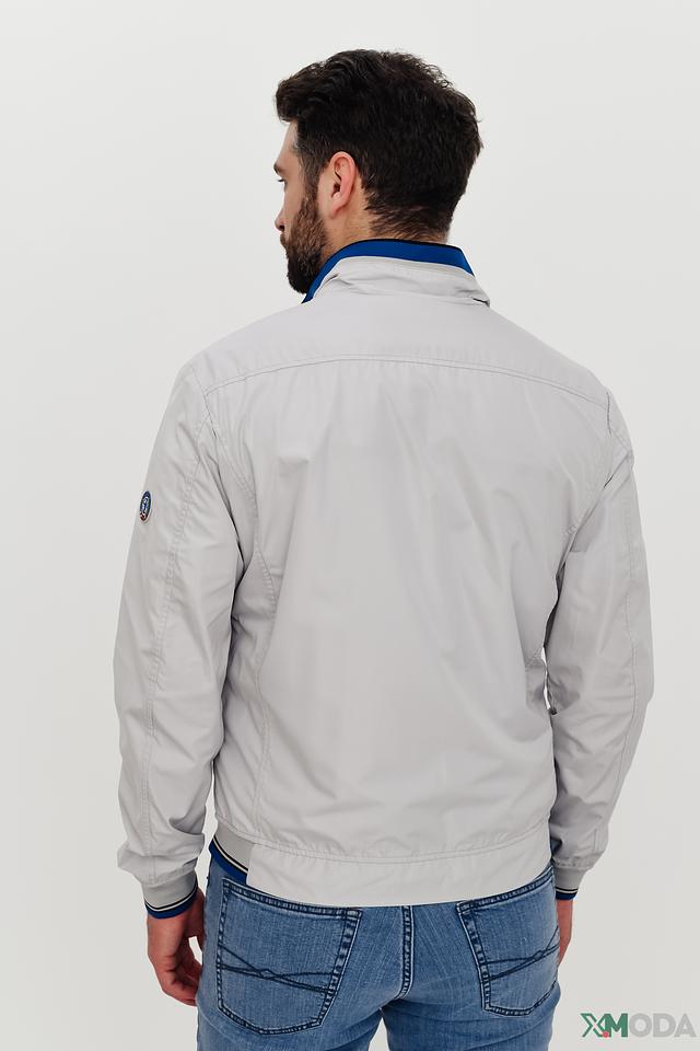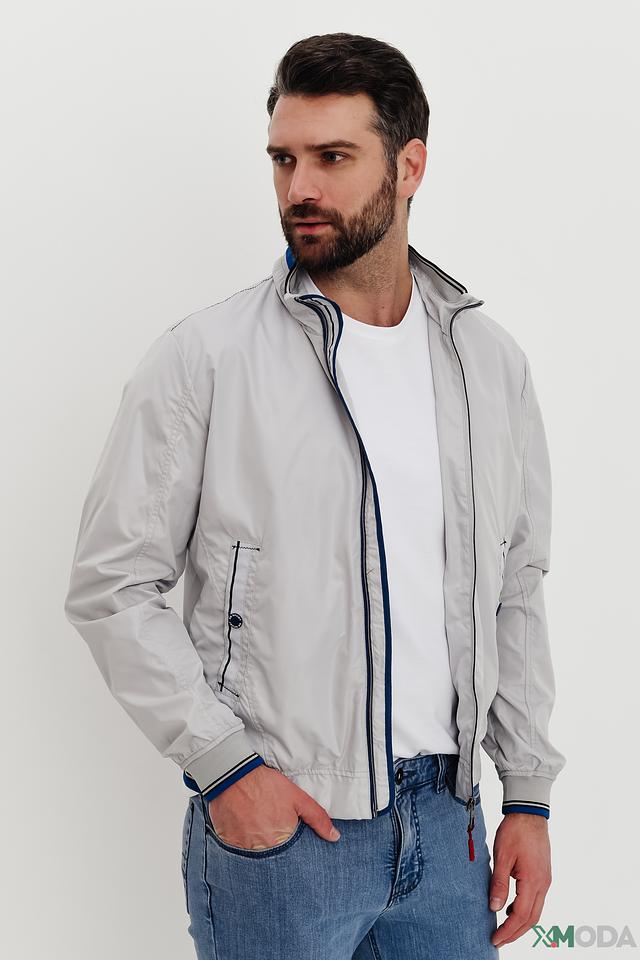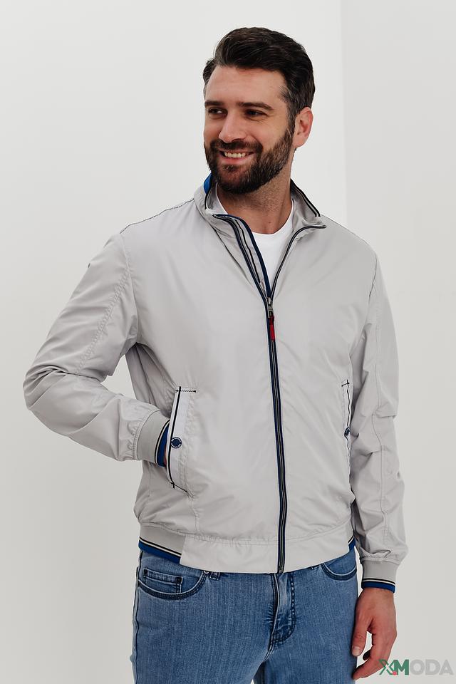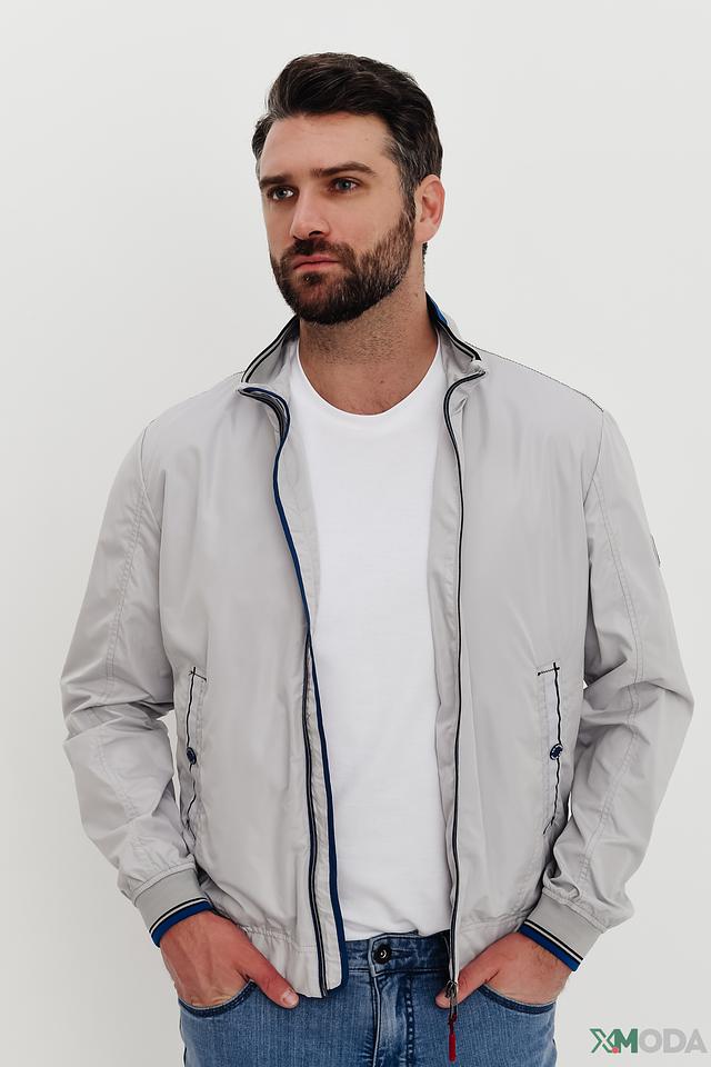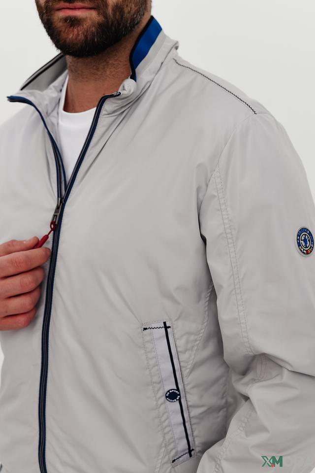 Куртка имеет серый цвет с контрастной синей отделкой на воротнике, манжетах и молнии. Это придает ей современный и динамичный вид. Прямой крой обеспечивает свободу движений, а удобная застежка-молния позволяет легко регулировать степень защиты от ветра.