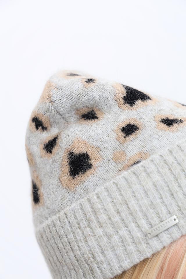 Женская шапка Seeberger серого цвета с оригинальным леопардовым принтом станет стильным дополнением к вашему образу. Изготовлена из мягкой и тёплой смеси шерсти, мохера и полиамида, обеспечивающей комфорт в холодную погоду. Состав: полиамид 49%, шерсть 35%, мохер 13%, эластан 3%