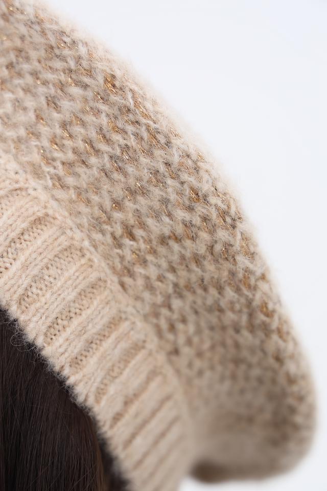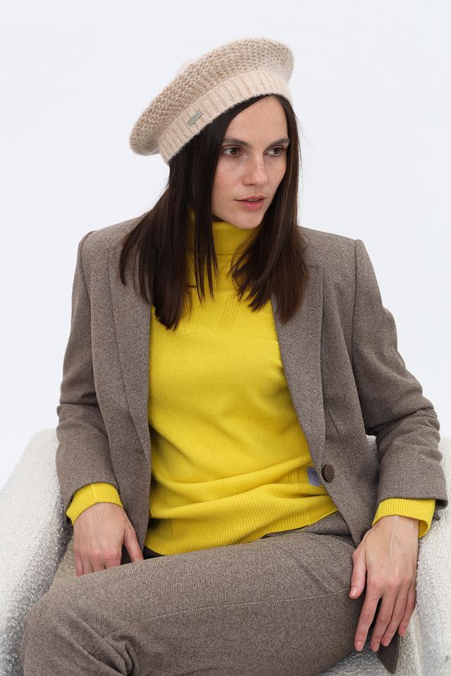 Вязаная текстура придает берету особый шарм и уют. Сочетание шерсти, акрила, полиамида и альпаки в составе обеспечивает не только тепло, но и мягкость, а также долговечность изделия.
