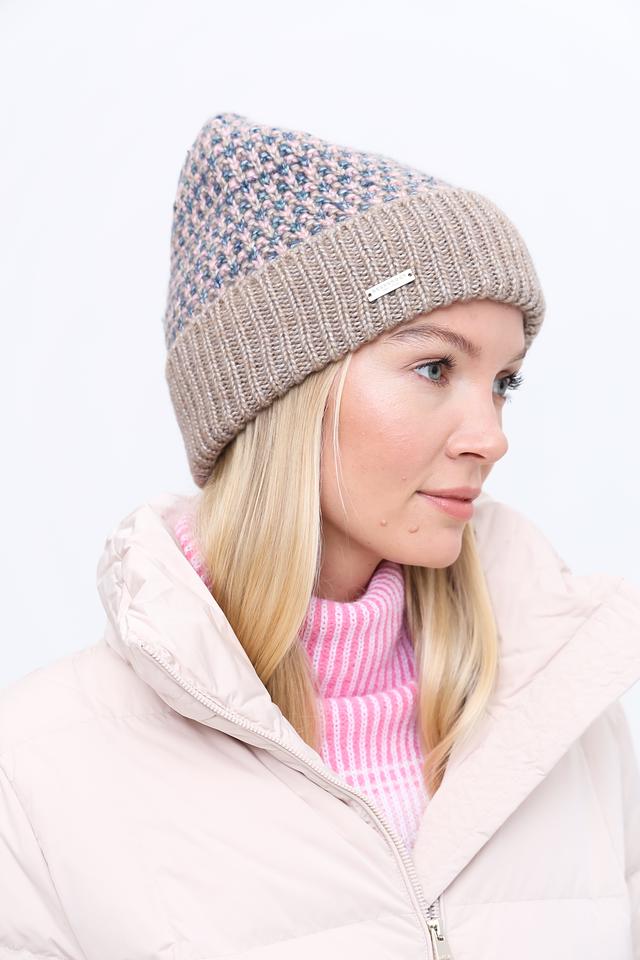 Эта шапка от Seeberger станет отличным дополнением к вашему зимнему гардеробу. Она выполнена в бежевом цвете с оригинальным узором в верхней части, сочетающим в себе оттенки голубого, розового и коричневого.