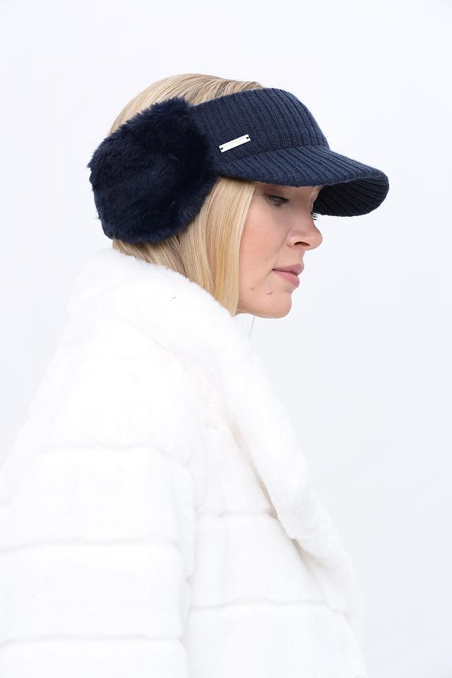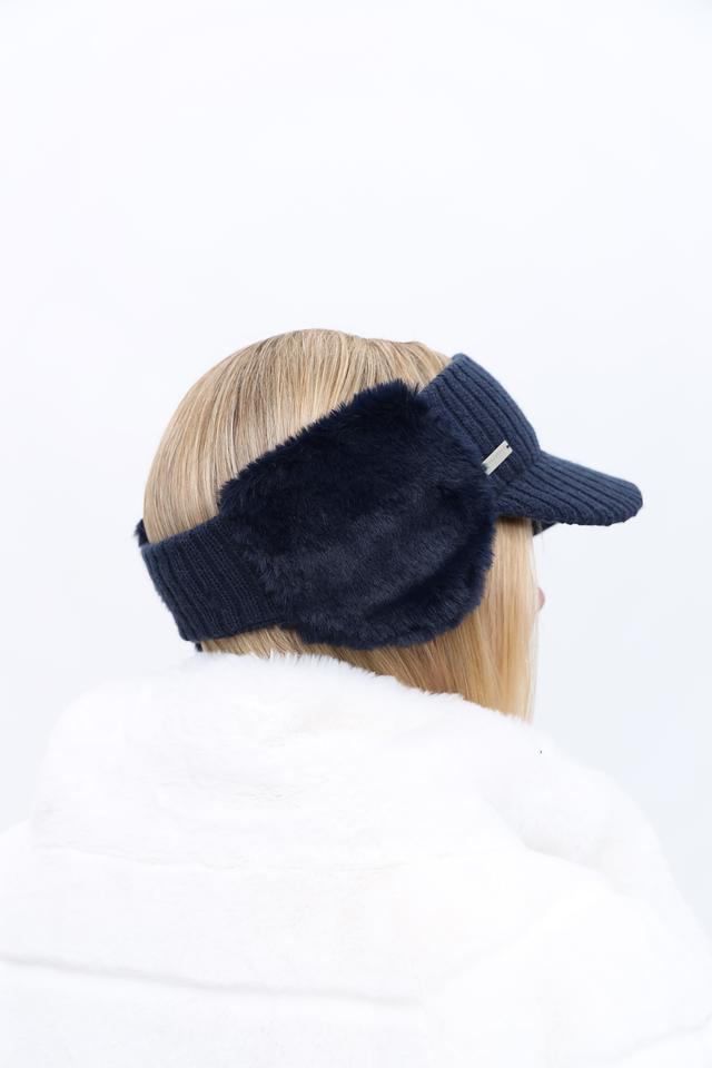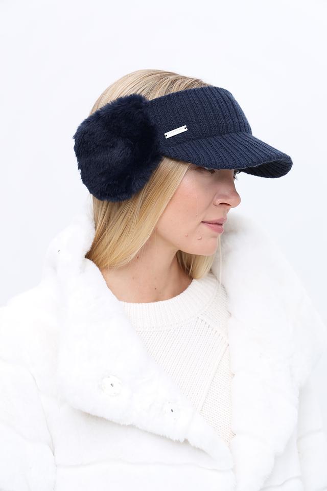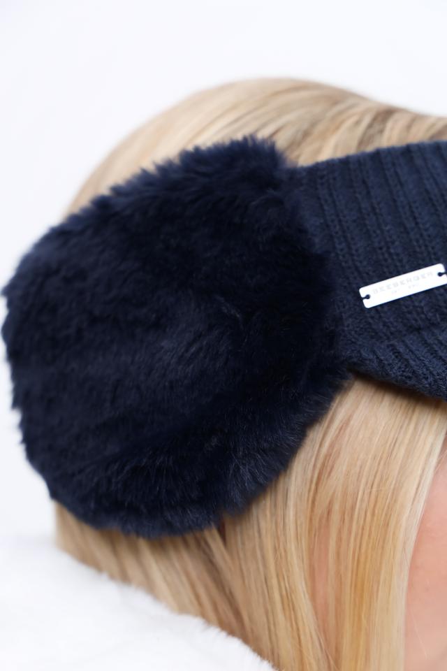 Повязка выполнена в насыщенном синем цвете и украшена мягким искусственным мехом, который не только согревает уши, но и придает образу стильный вид. На лицевой части повязки расположен небольшой металлический логотип бренда.