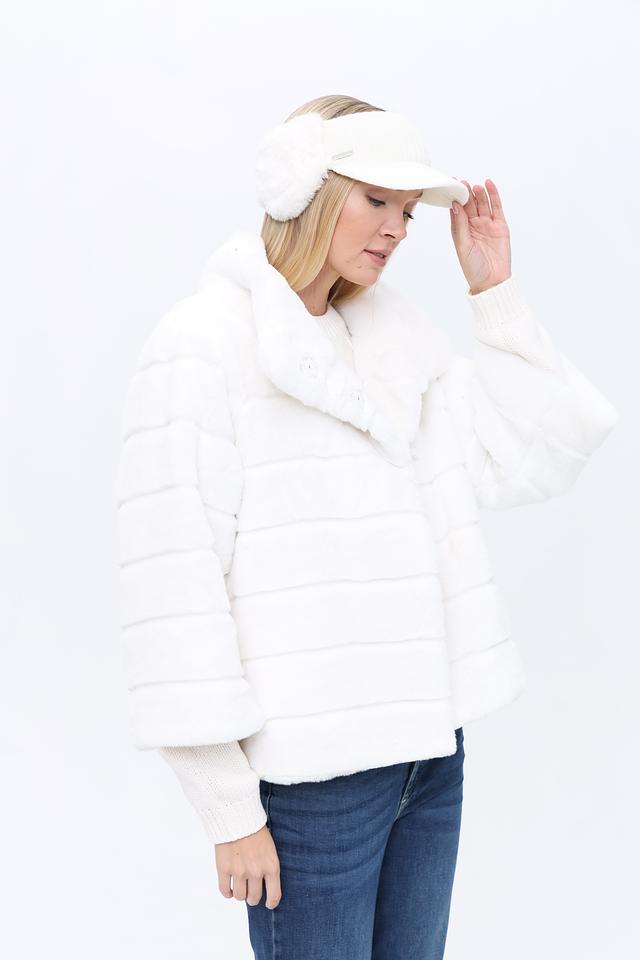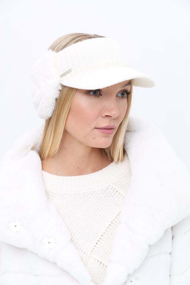 Белый цвет и отделка из искусственного меха придают аксессуару изысканный вид, который легко сочетается с зимней одеждой.