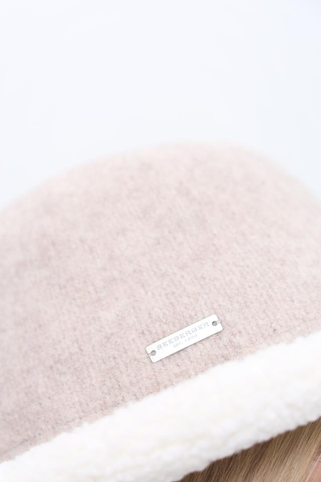 Дизайн шляпы отличается сочетанием бежевого цвета и мягкой отделки из искусственного меха по краю. Это придает ей особый шарм и делает ее привлекательной деталью образа. Логотип бренда Seeberger размещен на небольшой бирке, прикрепленной к шляпе.