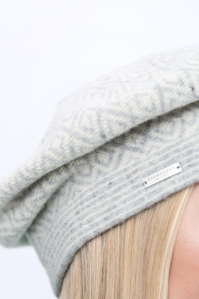 Берет имеет классическую форму и серый цвет с текстурным узором, что делает его универсальным и подходящим для различных стилей одежды. Небольшой логотип бренда Seeberger аккуратно размещен на изделии.