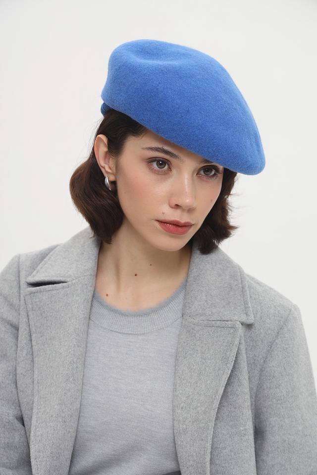 Берет имеет классическую форму и насыщенный голубой цвет, который легко сочетается с различными стилями одежды. Мягкая текстура шерсти приятна на ощупь и не вызывает раздражения.