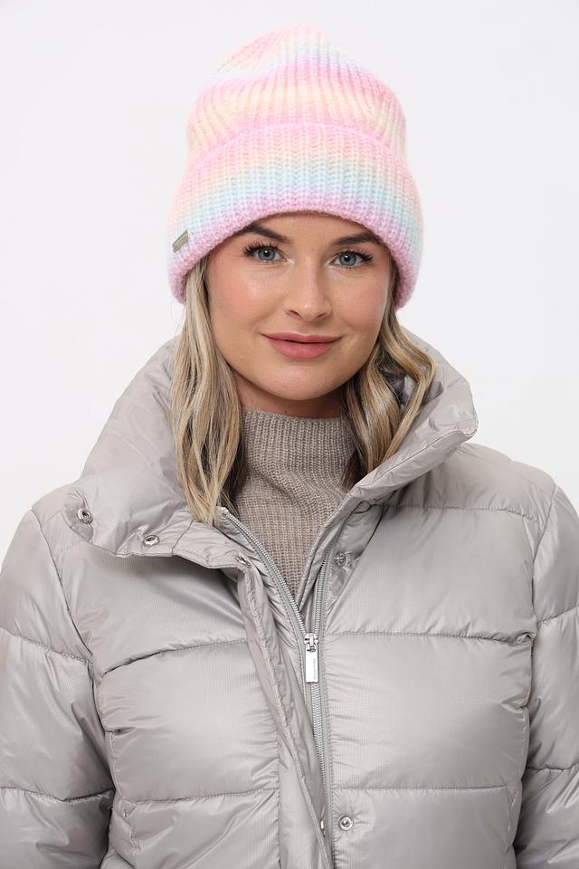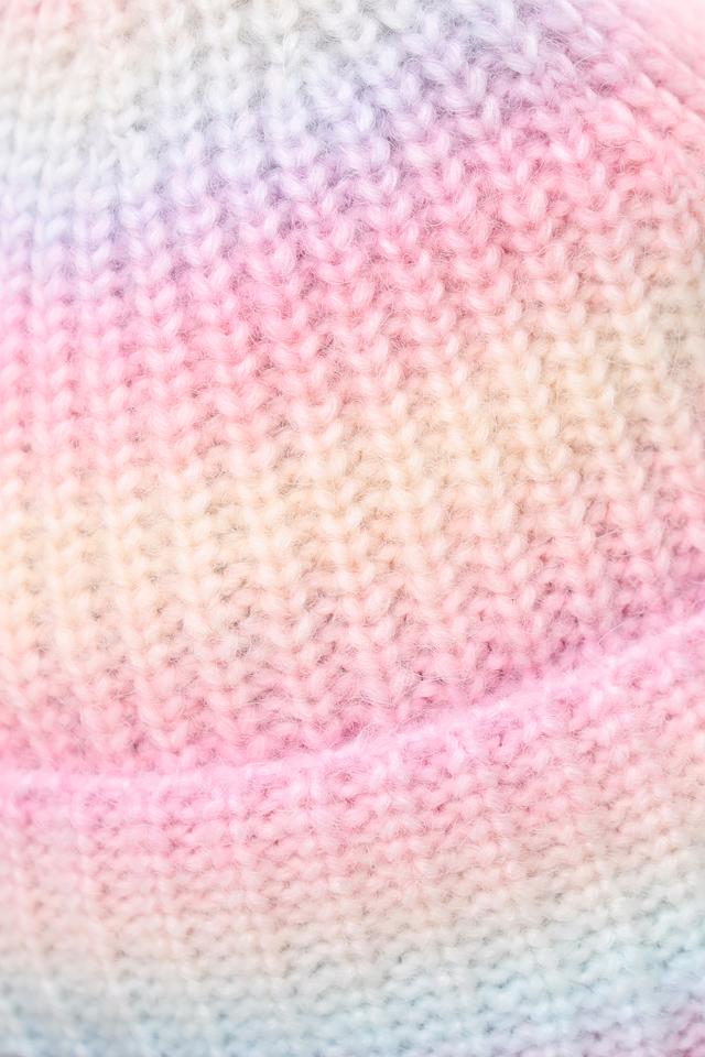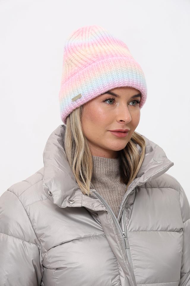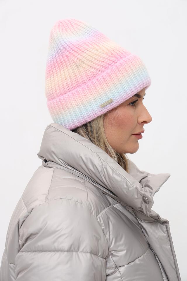 Шапка имеет удобный крой, плотно прилегающий к голове, и выполнена в оригинальном разноцветном дизайне, сочетающем нежные оттенки розового, голубого, желтого и бежевого. Такое сочетание цветов делает эту шапку универсальным аксессуаром, который легко сочетается с различной верхней одеждой.