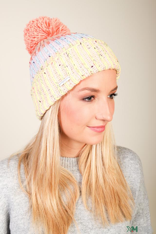 Дизайн шапки дополнен крупным помпоном нежно-розового цвета, который придает ей игривый и женственный вид. Шапка имеет удобную посадку и не стесняет движений. Многоцветный узор в пастельных тонах делает эту шапку уникальной и привлекательной.