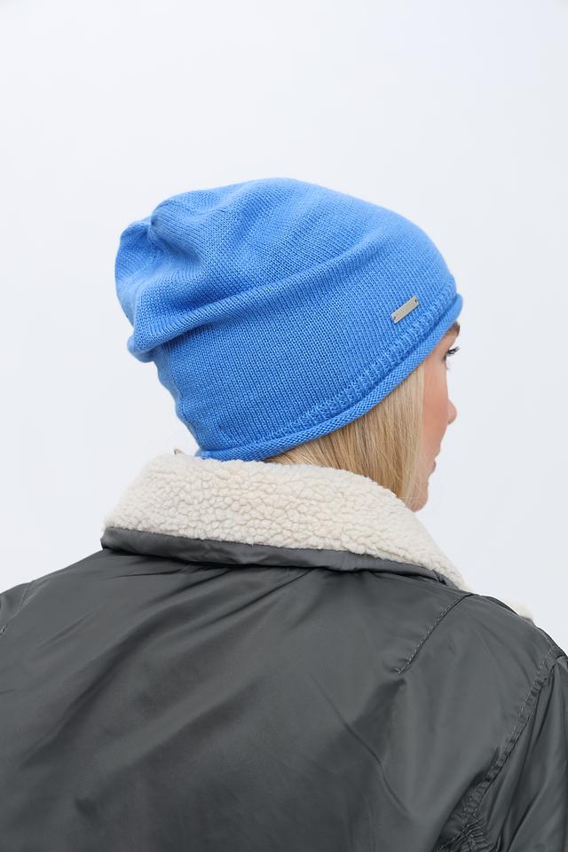 Шапка имеет классическую форму и приятную на ощупь текстуру. Голубой цвет шапки универсален и легко сочетается с различными видами верхней одежды.