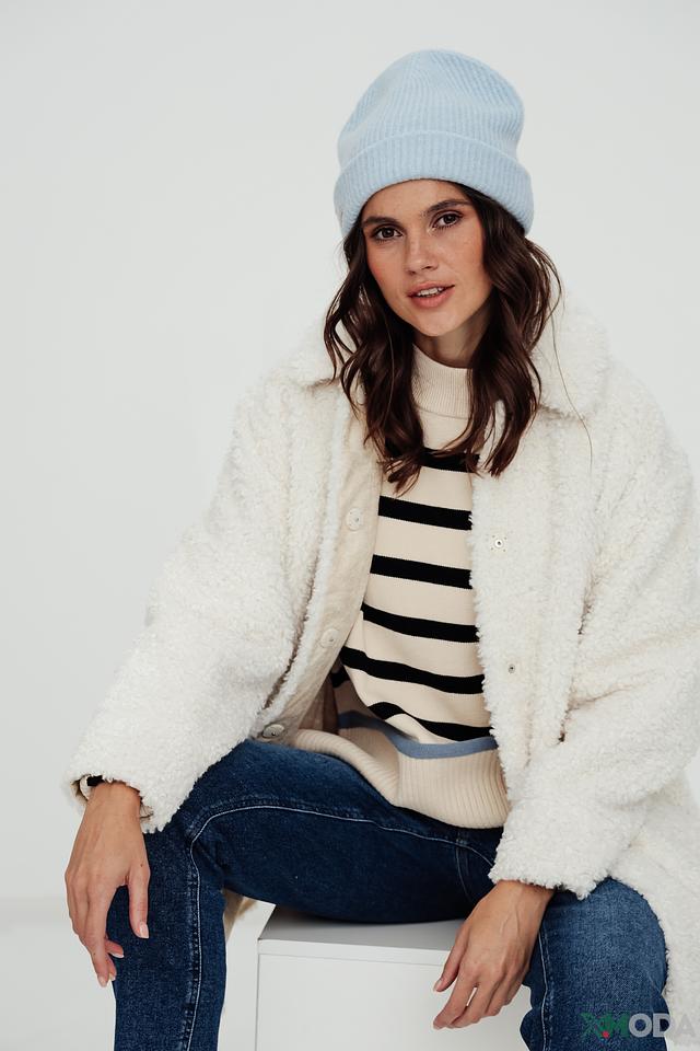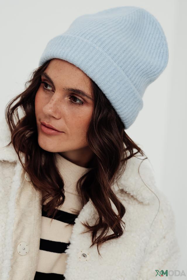 Шапка имеет классический дизайн и приятную текстуру, благодаря чему легко сочетается с различной одеждой. Голубой цвет придает образу свежесть и легкость. Небольшой логотип бренда на шапке подчеркивает ее оригинальность.