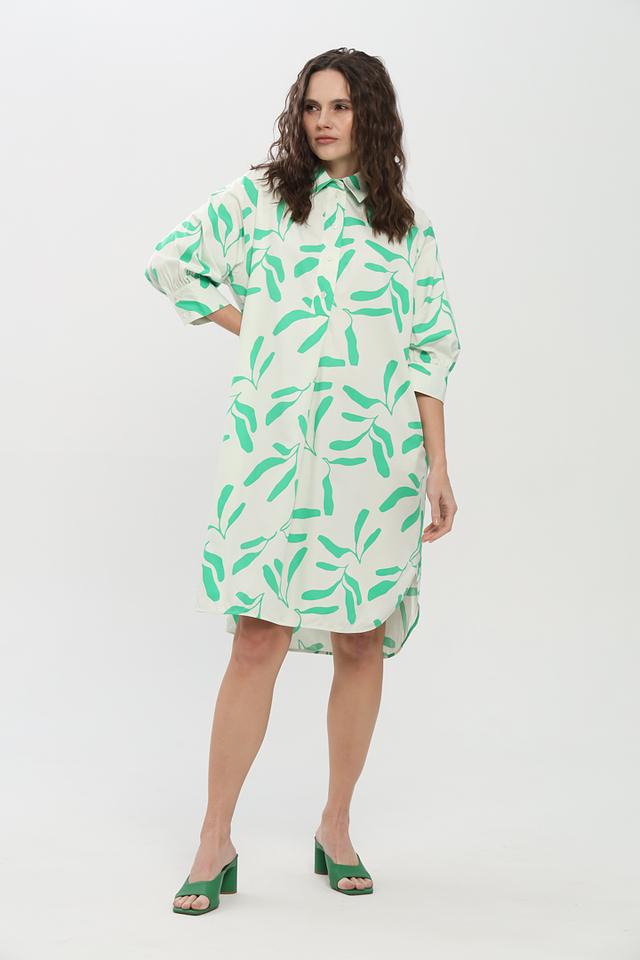 Платье рубашка от Seidensticker светло-зелёного цвета с ярким растительным принтом. Изготовлено из 100% хлопка, обеспечивающего комфорт и воздухопроницаемость. Стильный и удобный вариант для повседневного образа. Состав: хлопок 100%