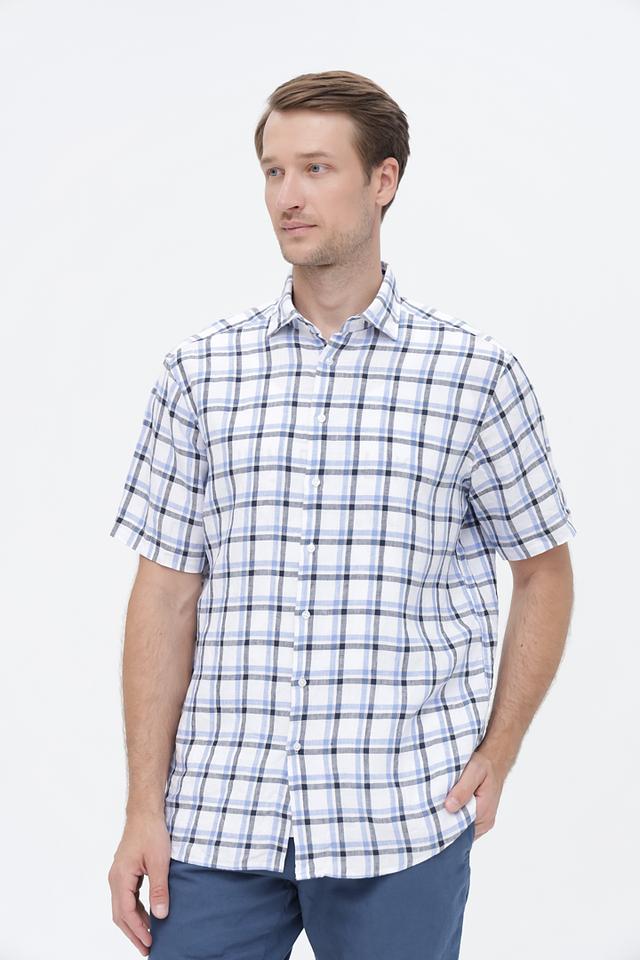 Мужская рубашка с коротким рукавом Seidensticker голубого цвета в классическую клетку. Изготовлена из 100% льна, обеспечивающего комфорт и воздухопроницаемость в жаркую погоду. Отличный выбор для создания стильного и непринужденного образа. Состав: лен 100%