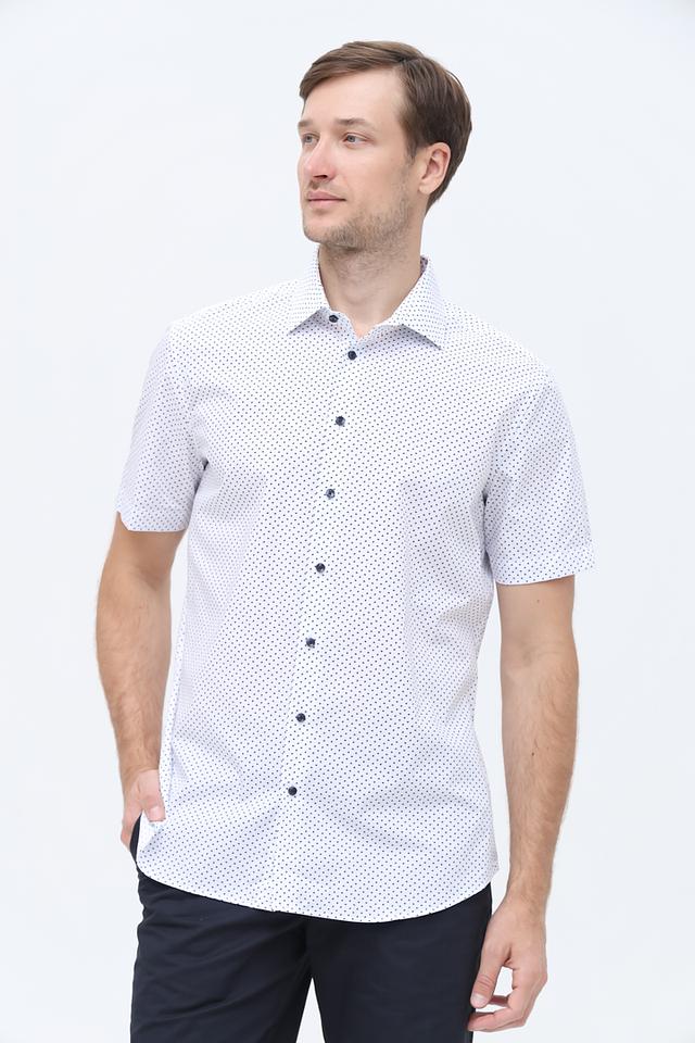 Мужская рубашка Seidensticker с коротким рукавом белого цвета, украшенная мелким синим горошком. Классический крой и 100% хлопковый состав обеспечивают комфорт и удобство в носке. Состав: хлопок 100%
