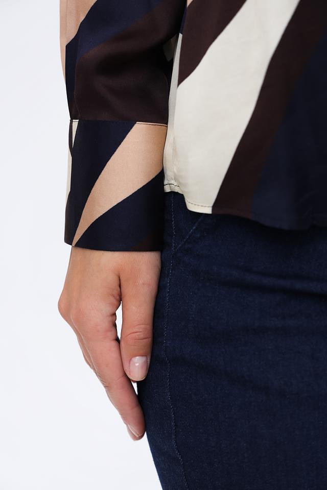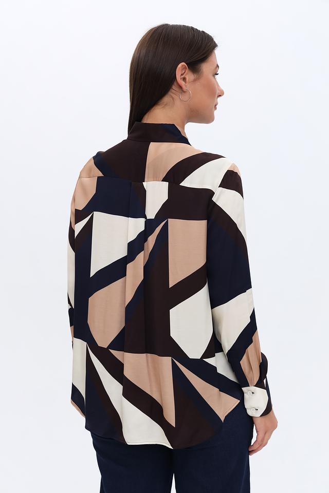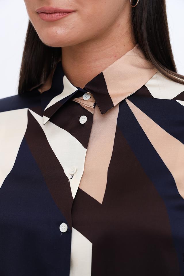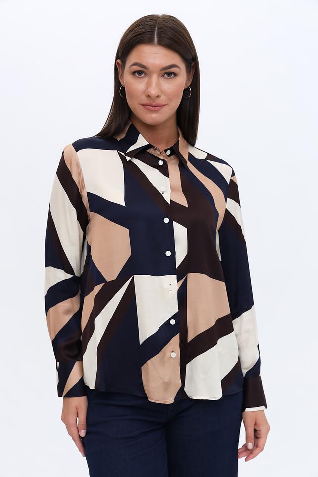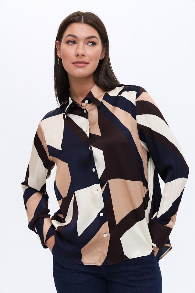 Женская рубашка Seidensticker синего, бежевого и коричневого цветов с оригинальным геометрическим принтом. Модель с длинным рукавом и классическим кроем станет отличным дополнением к вашему гардеробу. Состав: вискоза 100%