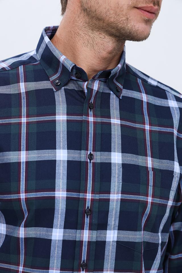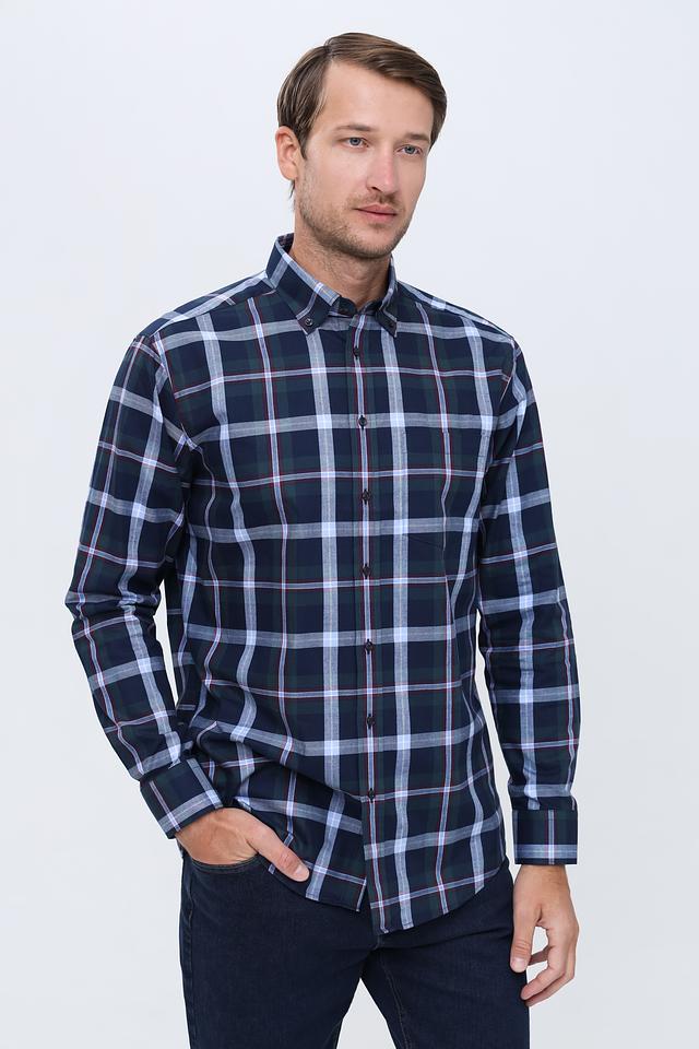 Рубашка имеет длинные рукава и стандартный крой, обеспечивающий комфортную посадку по фигуре. Воротник рубашки выполнен в классическом стиле, что делает ее подходящей для различных случаев – от деловых встреч до повседневной носки.
