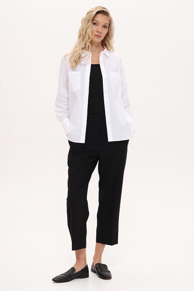 Брюки имеют прямой крой и стандартную посадку по фигуре, обеспечивая комфорт в носке. Модель дополнена боковыми карманами и задними карманами с клапанами. Застежка на молнии и пуговицу обеспечивает надежную фиксацию.