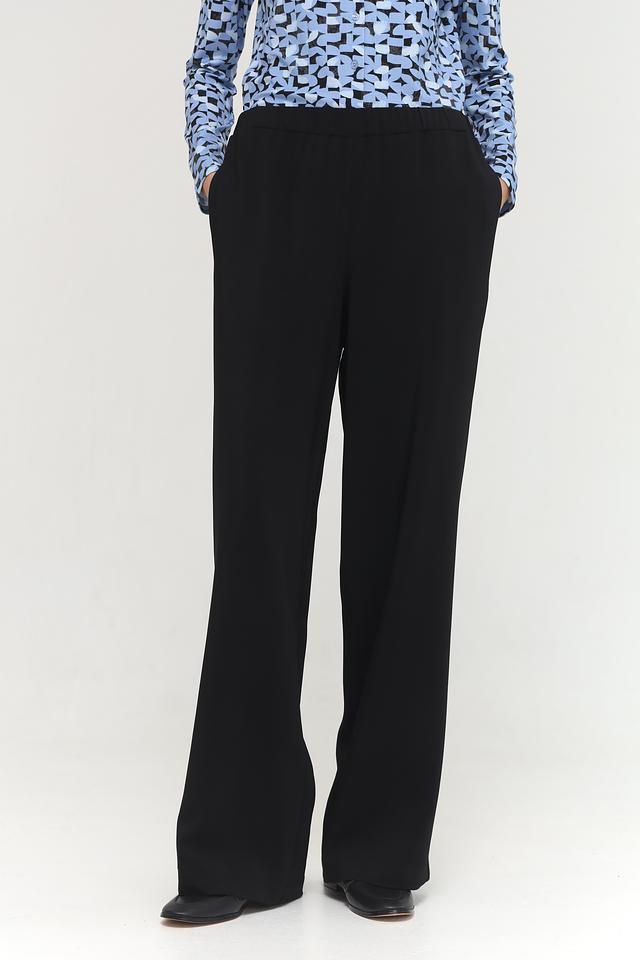 Брюки имеют прямой крой и стандартную посадку по талии. Они изготовлены из высококачественной вискозы с добавлением эластана, что обеспечивает комфорт при носке и хорошую посадку по фигуре. Ткань приятна на ощупь и хорошо драпируется.