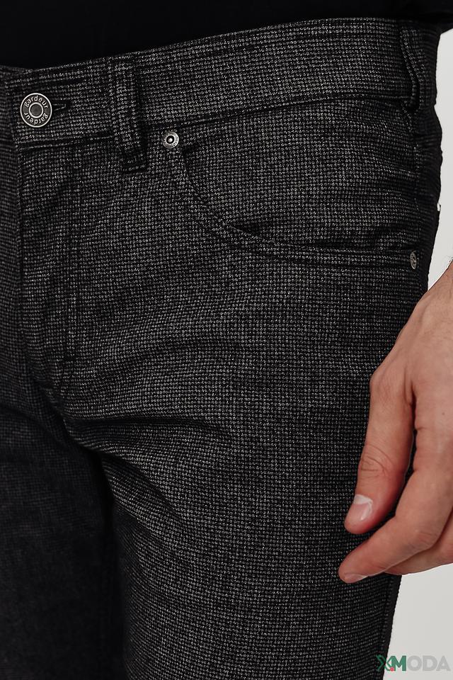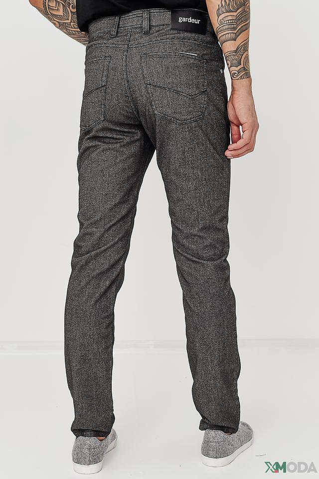 На брюках присутствуют функциональные карманы, а также фирменная металлическая фурнитура Gardeur. Застежка выполнена на молнию и пуговицу. Ткань имеет текстурированную поверхность, напоминающую деним, что придает брюкам стильный и современный вид.