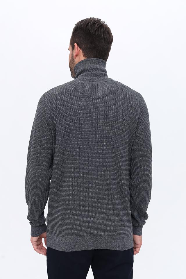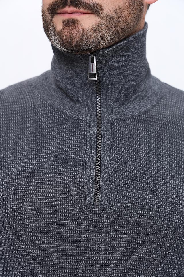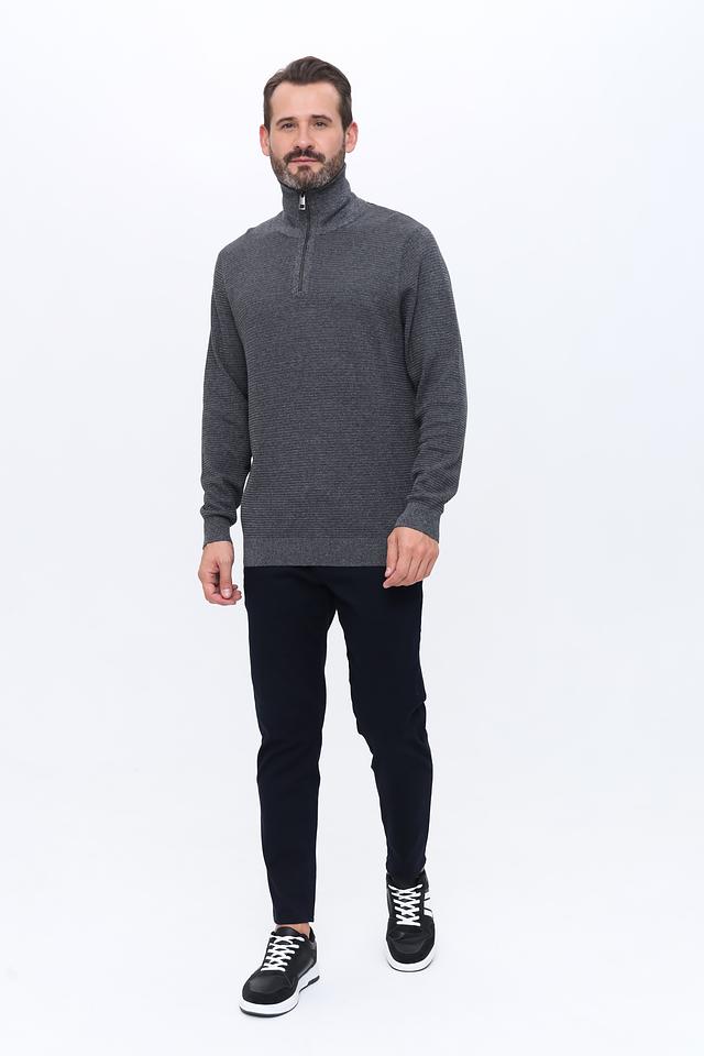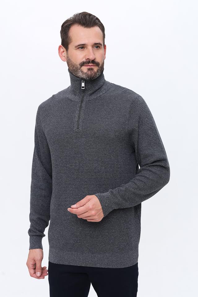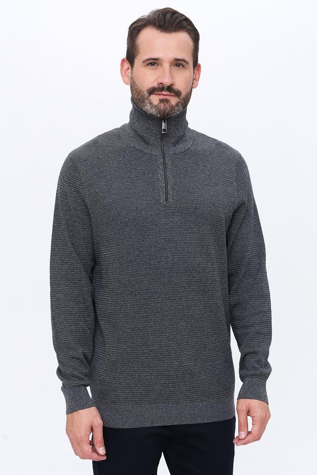 Мужской джемпер от Casa Moda выполнен в сером цвете с текстурным узором. Модель имеет полувысокий воротник и застежку-молнию, что позволяет регулировать степень защиты от холода и создавать различные образы.