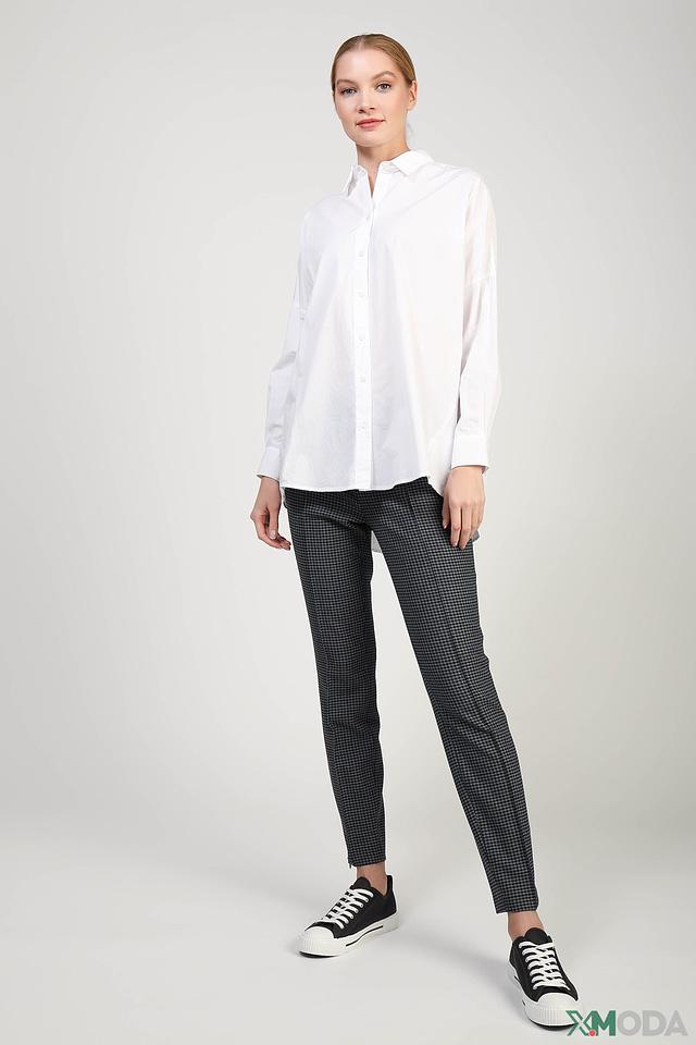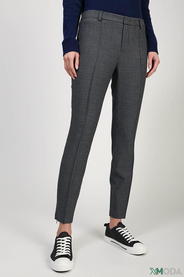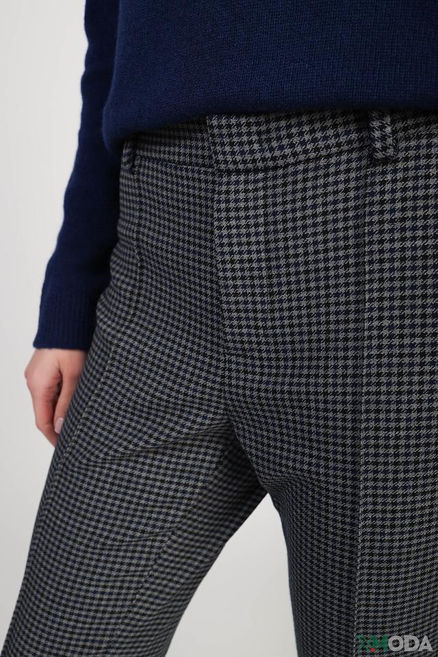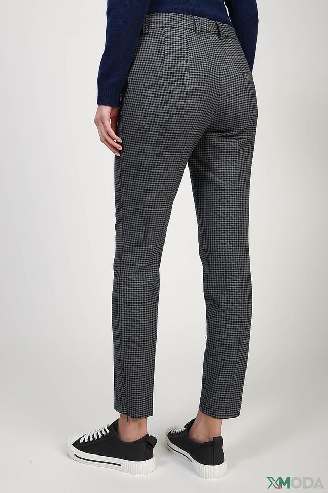Особенностью модели является клетчатый принт в графитовых тонах, который придает брюкам элегантный и современный вид. Брюки застегиваются на молнию и пуговицу, имеют стандартную высоту талии. Они идеально подойдут для создания как деловых, так и повседневных образов.