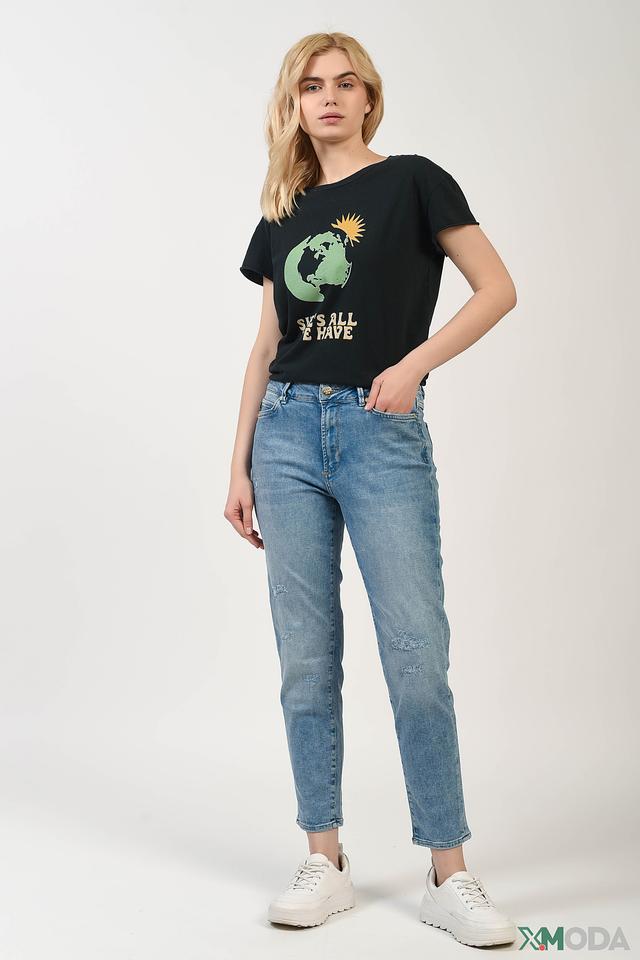 Чёрная футболка Set с оригинальным принтом в виде земного шара и надписью. Изготовлена из 100% хлопка, обеспечивающего комфорт и воздухопроницаемость. Стильный и актуальный элемент базового гардероба. Состав: хлопок 100%