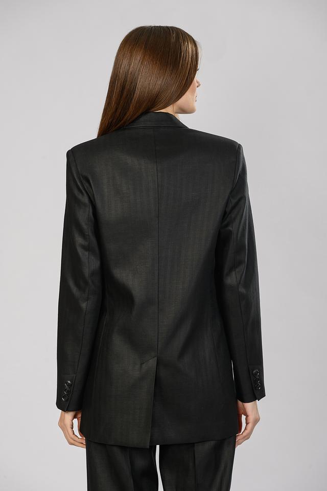 Жакет выполнен из высококачественной ткани с выраженной текстурой, напоминающей тонкую полоску. Это придает изделию благородный вид и делает его интересным акцентом в вашем стиле.