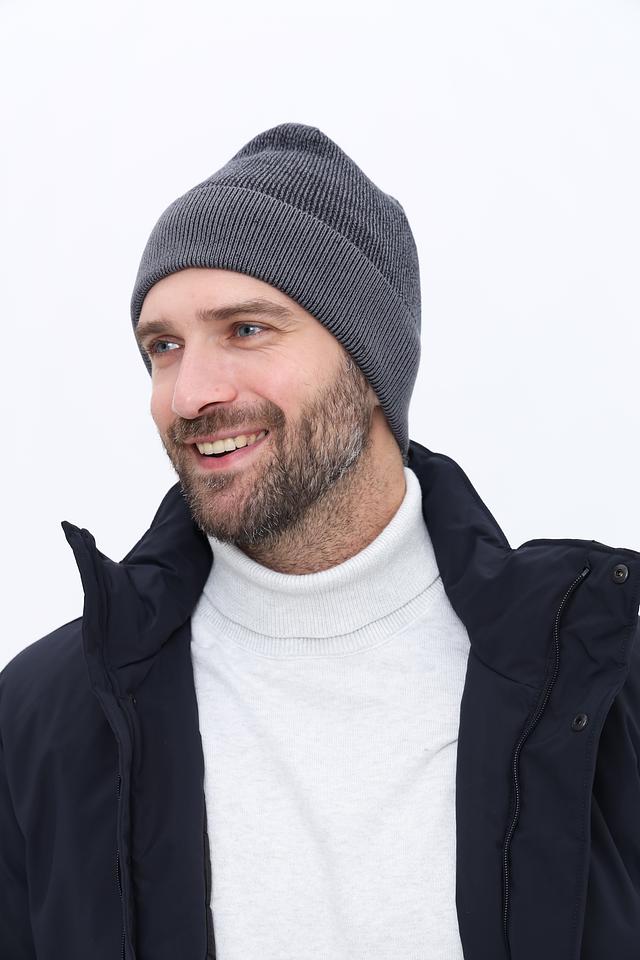Шапка выполнена в сером цвете, который легко сочетается с различными оттенками одежды. Она идеально подойдет для мужчин, предпочитающих лаконичность и практичность.