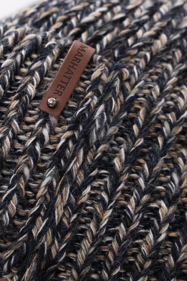 Состав ушанки включает 74% полиакрил, 13% шерсть, 8% вискозу и 5% альпаку. Такое сочетание материалов обеспечивает изделию мягкость, теплоизоляцию и долговечность. На ушанке присутствует фирменный логотип Marhatter на кожаной этикетке.