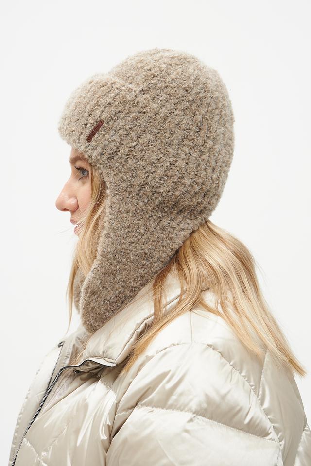 Бежевая шапка-ушанка от Marhatter – стильный и тёплый аксессуар для зимнего сезона. Модель выполнена из мягкого и объёмного вязаного полотна, обеспечивающего комфорт и защиту от холода. Состав: Состав_2 полиэстер 100%, акрил 50%, мохер 22%, нейлон 16%, шерсть 10%, стрейч 2%