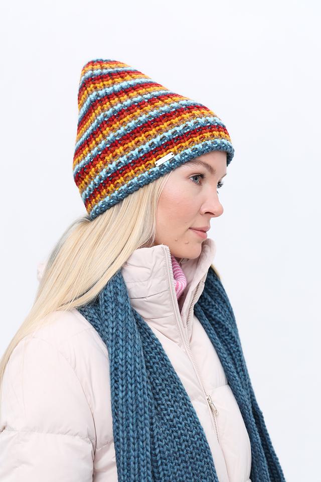 Женская шапка Seeberger ярких цветов выполнена в полосатом дизайне. Модель изготовлена из мягкого сочетания полиакрила и шерсти, обеспечивающего комфорт и тепло в холодное время года. Состав: полиакрил 70%, шерсть 30%
