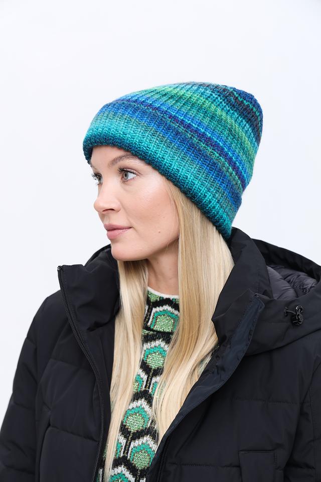 Многоцветный меланжевый узор придает шапке оригинальность и позволяет легко сочетать ее с различными элементами гардероба. Шапка плотно прилегает к голове, защищая от холода и ветра.