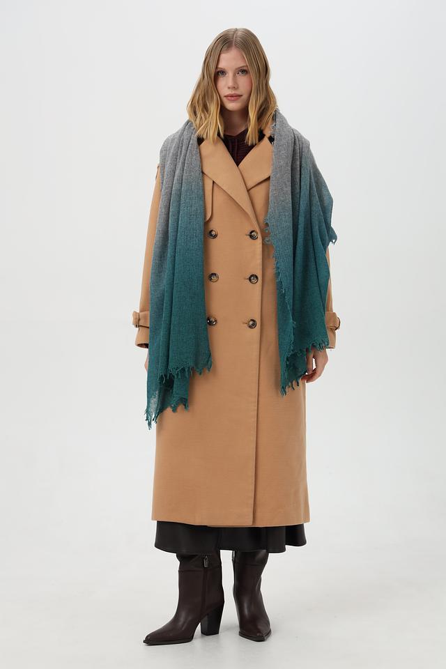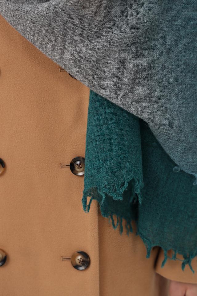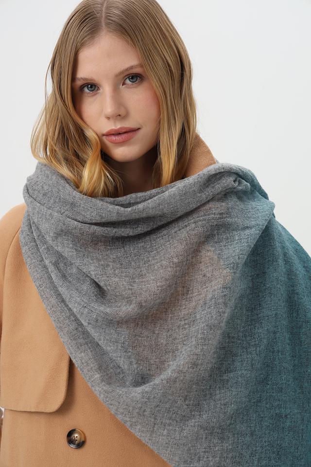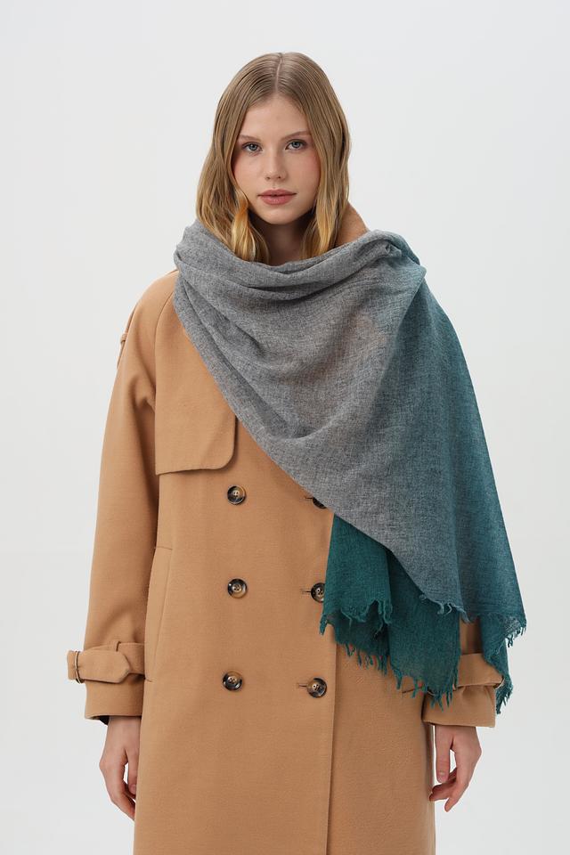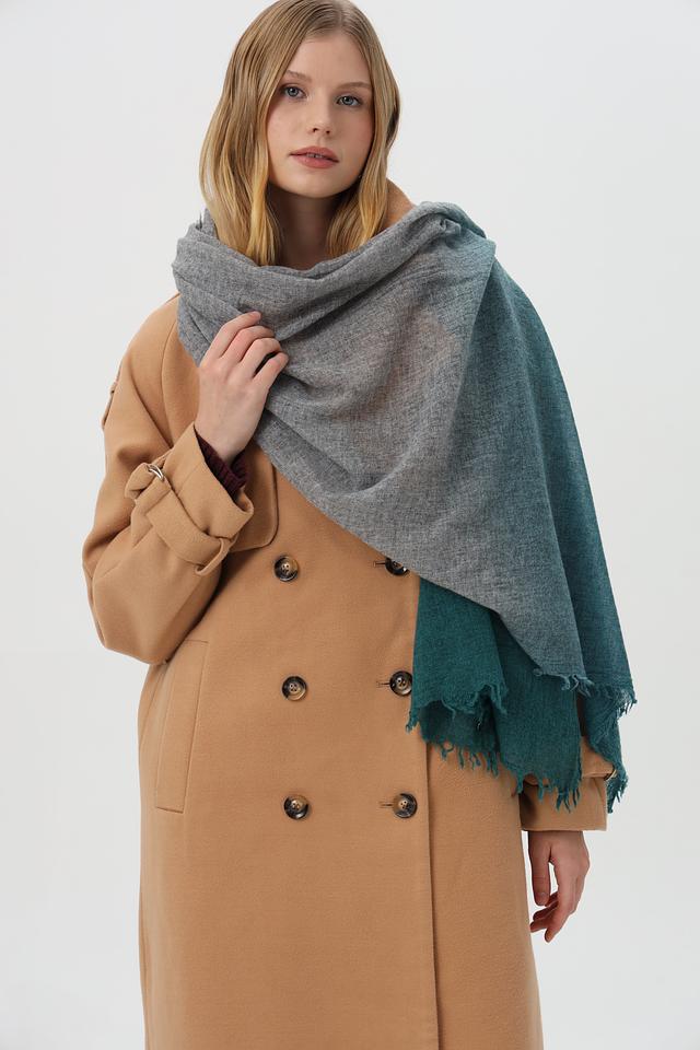 Этот шарф от Fraas станет прекрасным дополнением к вашему гардеробу. Он выполнен в технике градиента, плавно переходящего от серого к насыщенному зелёному цвету.