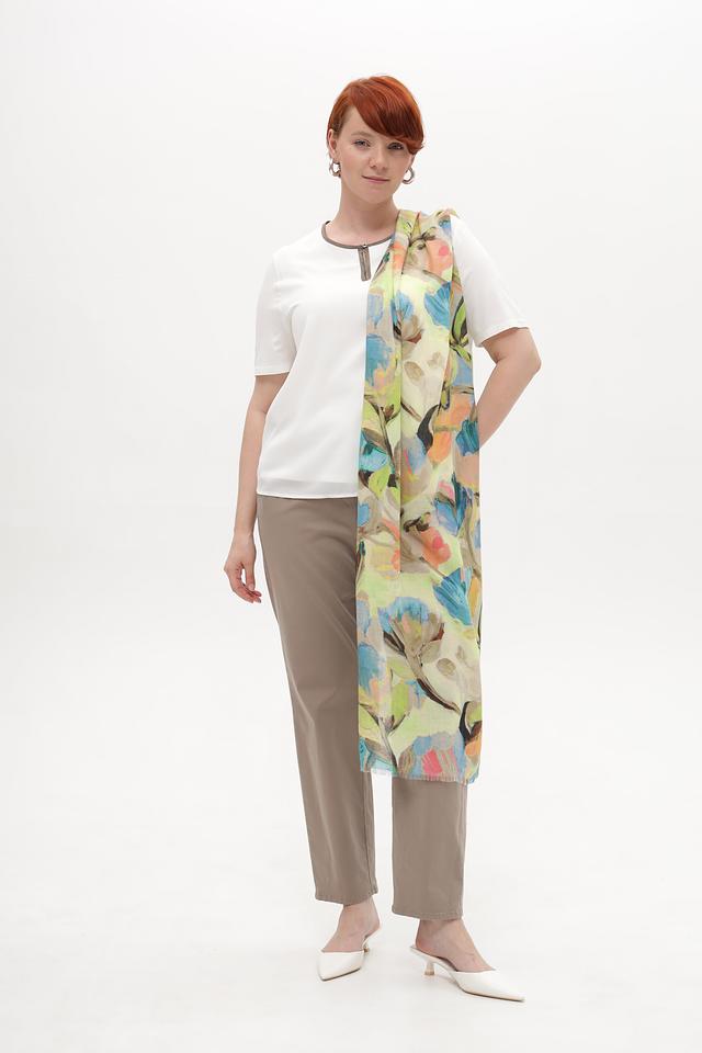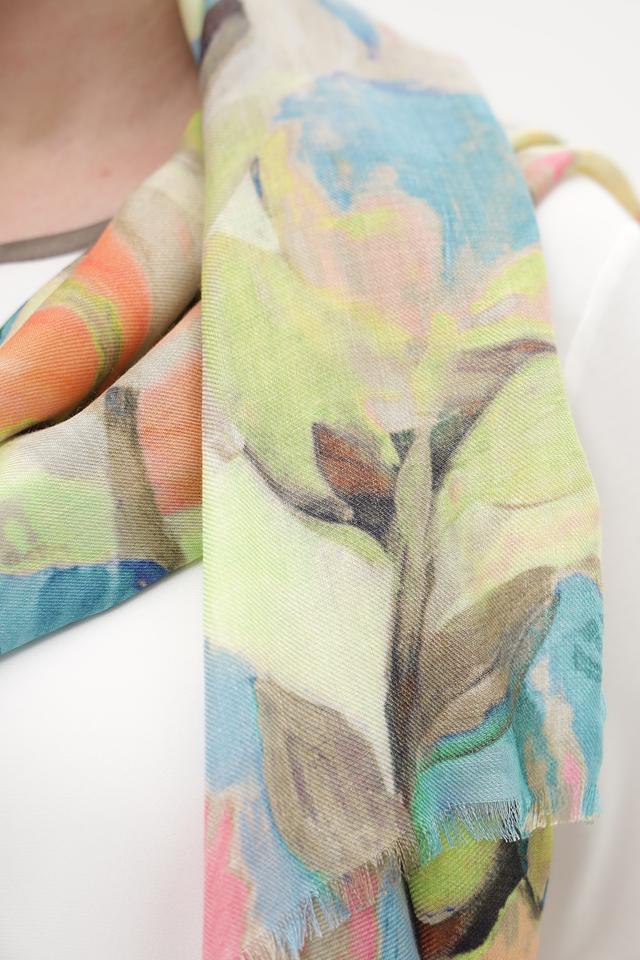Представляем вашему вниманию шарф от бренда Fraas, выполненный в нежной мятной цветовой гамме и украшенный ярким цветочным принтом.