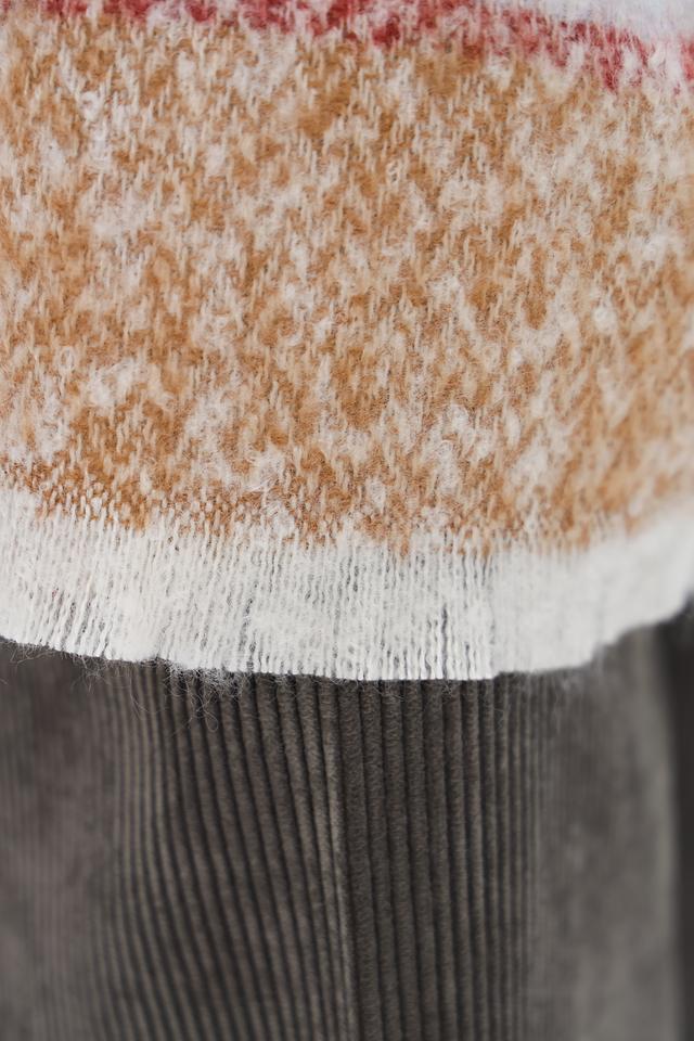Шарф изготовлен из 100% полиакрила, что делает его приятным на ощупь, легким в уходе и устойчивым к износу. Текстура ткани мягкая и пушистая, обеспечивающая дополнительный комфорт.