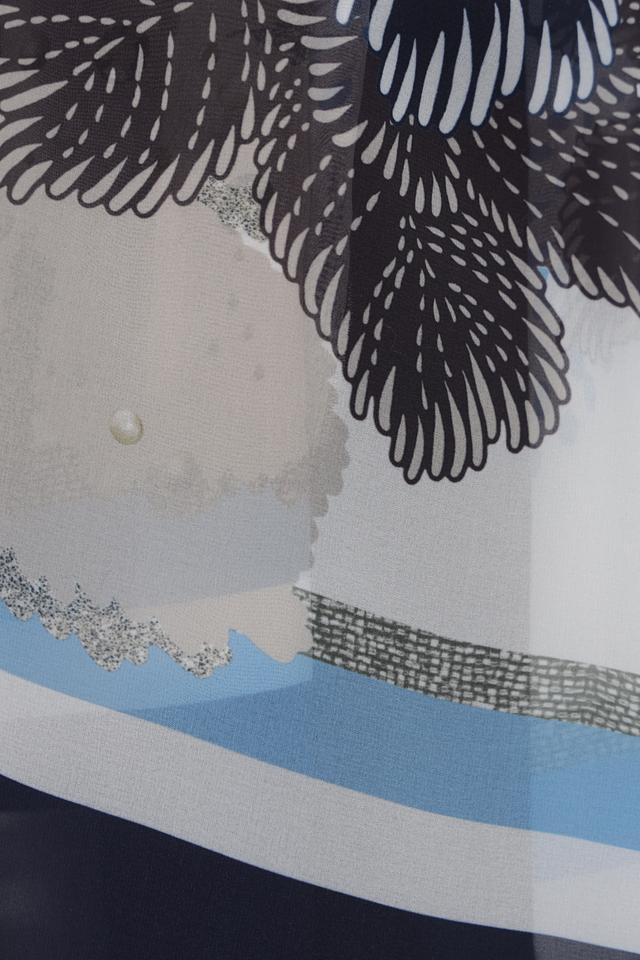 Представляем вашему вниманию элегантный шарф от бренда Frank Walder. Шарф выполнен в светло-серой цветовой гамме и украшен необычным принтом с изображением птиц и геометрических фигур.