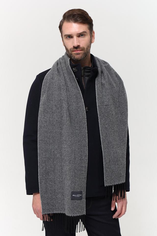 Стильный мужской шарф Marc O Polo серого цвета с классическим узором "клетка" станет отличным дополнением к вашему образу. Изготовлен из 100% шерсти, обеспечивая тепло и комфорт в холодное время года. Состав: шерсть 100%
