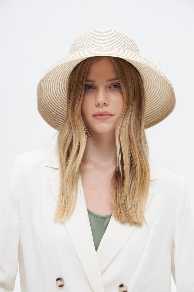 Благодаря своему нейтральному бежевому цвету, эта шляпа легко сочетается с различными нарядами, добавляя им завершенность и стиль.