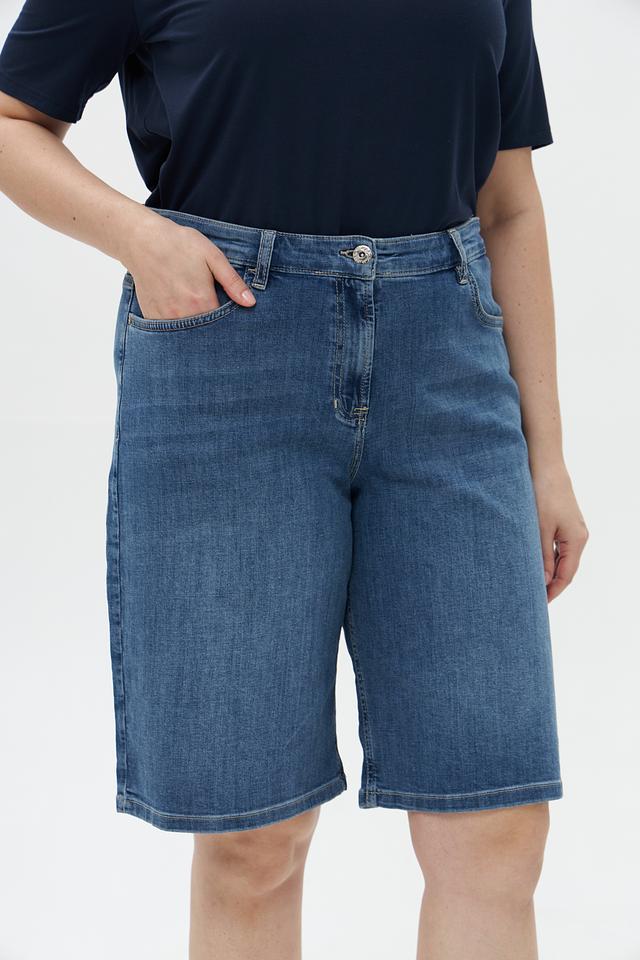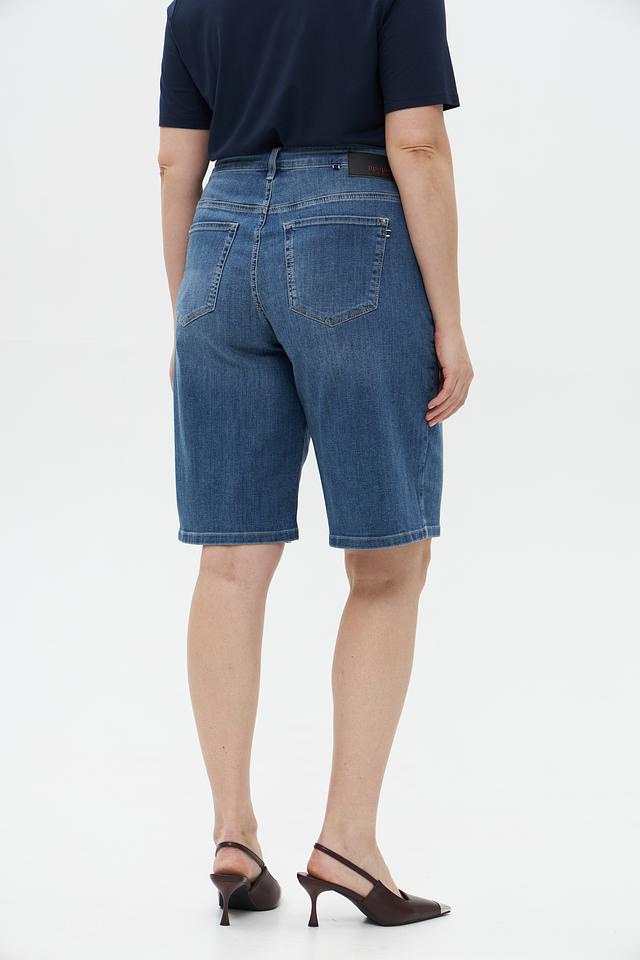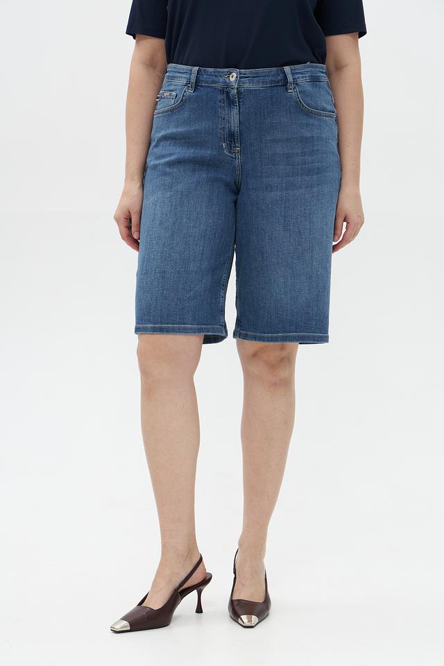 Шорты имеют прямую посадку, стандартную талию и длину до колена. Классический пятикарманный дизайн дополнен аккуратными швами и стильной фурнитурой. Застежка на молнию и пуговицу обеспечивает надежную фиксацию.