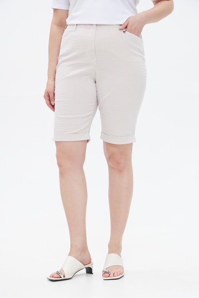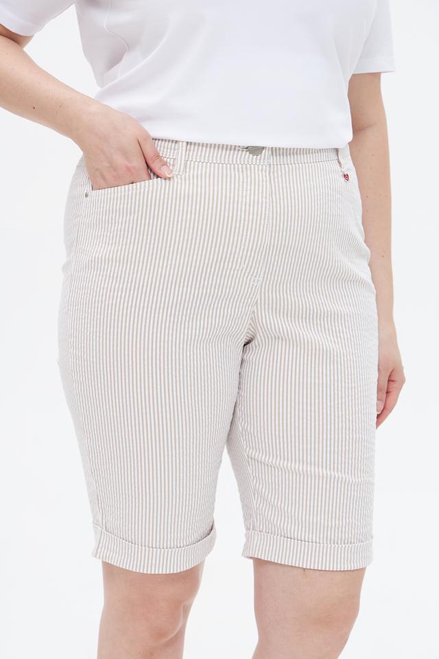 Шорты Relaxed by Toni бежевого цвета в тонкую полоску — удобная и стильная модель на каждый день. Изготовлены из смесового хлопка с добавлением полиамида и эластана для комфорта и лучшей посадки. Состав: хлопок 65%, полиамид 30%, эластан 5%