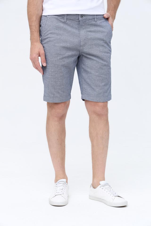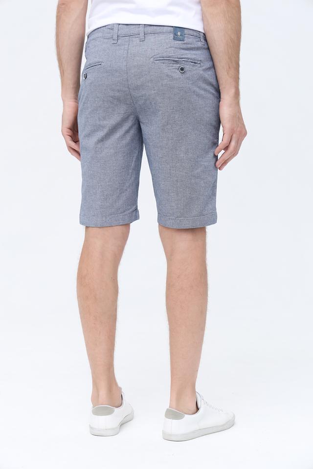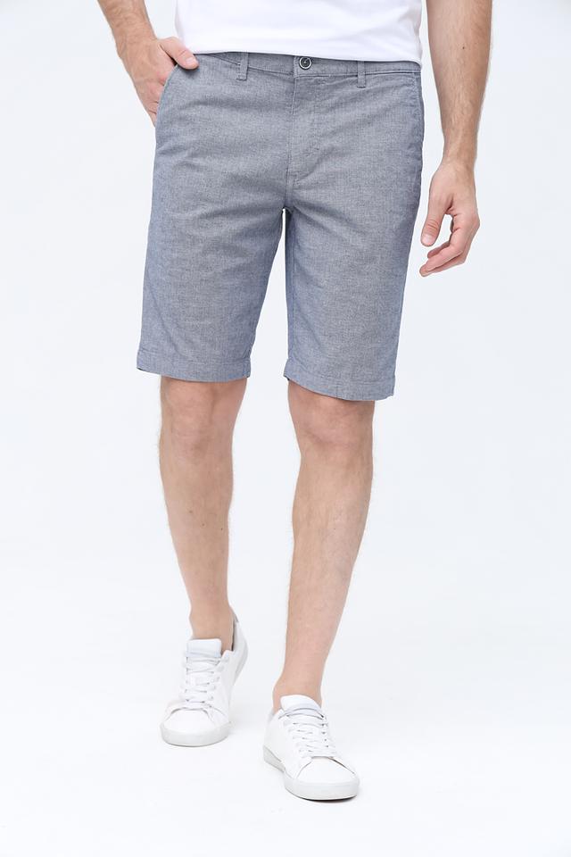 Застежка на молнию и пуговицу обеспечивает надежную фиксацию. Шорты имеют два боковых кармана и два задних кармана с клапанами. Текстура ткани напоминает лён, что придает шортам стильный и современный вид.