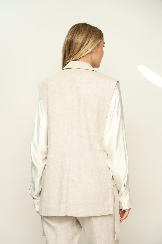 Бежевый жакет-жилет от Silvian Heach – стильное и современное решение для создания многослойных образов. Модель выполнена из льна с хлопком, имеет классический крой и застегивается на пуговицы. Состав: лен 55%, хлопок 45%