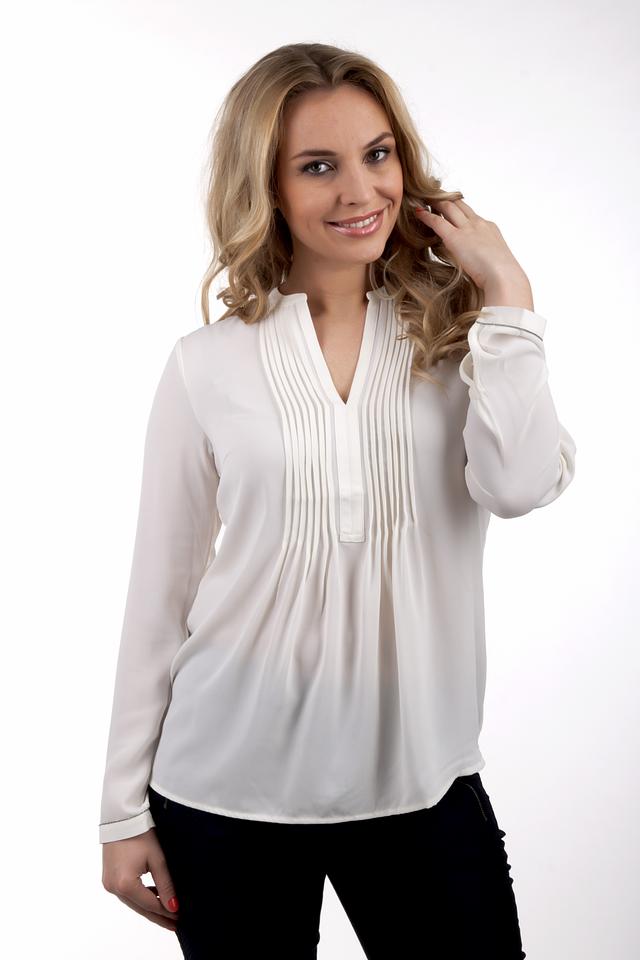 Белая блуза от SIR Oliver с V-образным вырезом и плиссировкой. Легкая и воздушная модель из полиэстера идеально подойдет для создания элегантного образа. Блуза имеет длинные рукава и аккуратный крой. Состав: полиэстер 100%