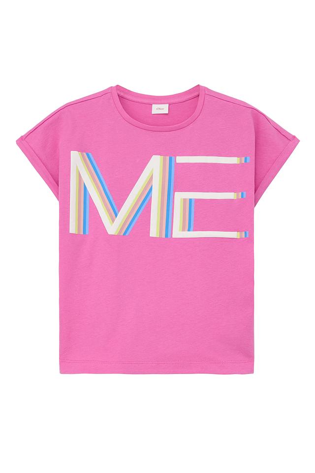 Розовая футболка s.Oliver для девочки с ярким принтом "ME". Изготовлена из 100% хлопка, обеспечивая комфорт и удобство в носке. Стильный и модный вариант для повседневной носки. Состав: хлопок 100%