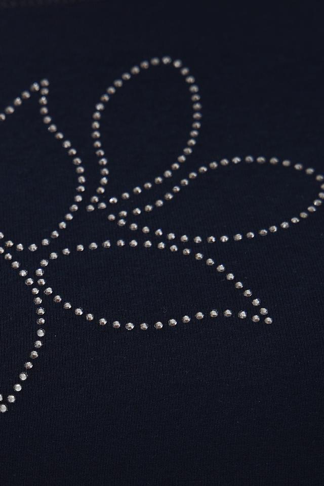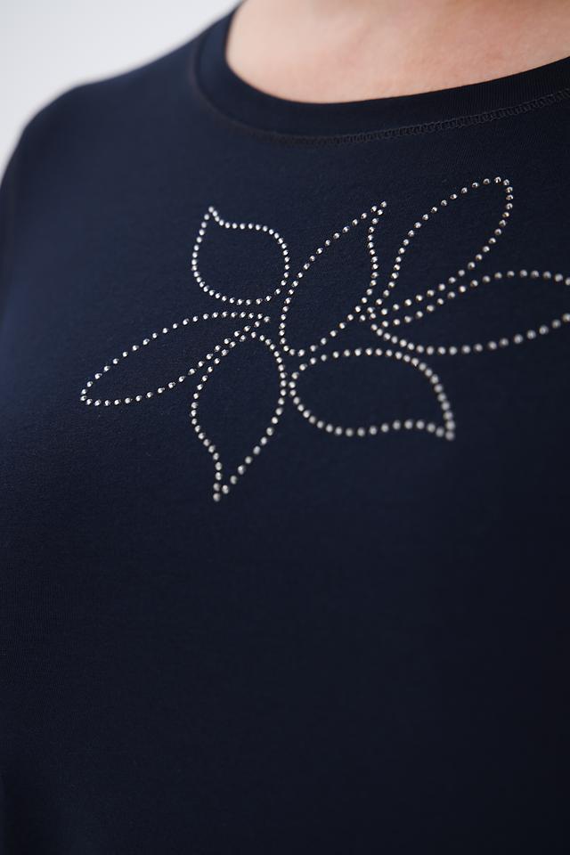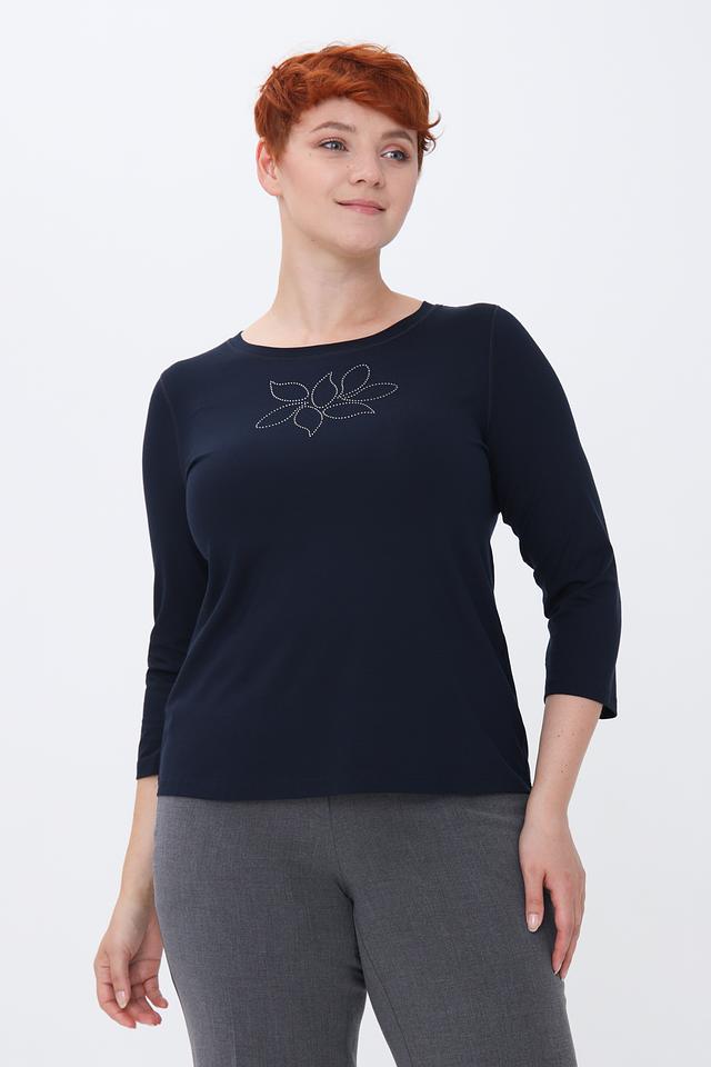 Лонгслив Sommer mann темно-синего цвета с декоративной вышивкой в виде цветка. Изготовлен из мягкой вискозы с добавлением эластана для комфортной посадки и свободы движений. Идеально подходит для создания повседневных образов. Состав: вискоза 93%, эластан 7%