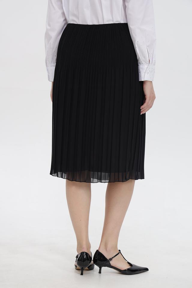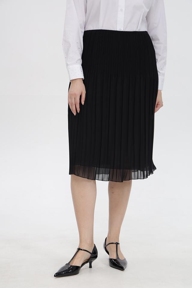 Черная плиссированная юбка Sommer mann длиной миди. Изготовлена из 100% полиэстера, легкая и удобная в носке. Идеально подойдет для создания элегантных и женственных образов. Состав: полиэстер 100%