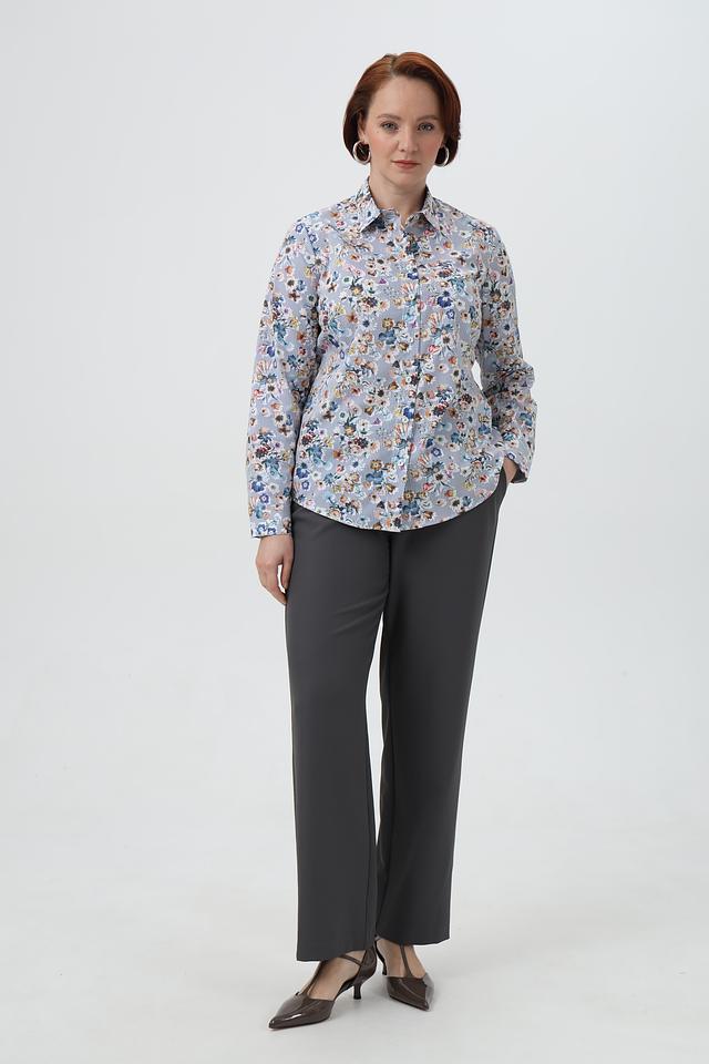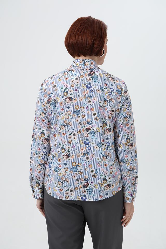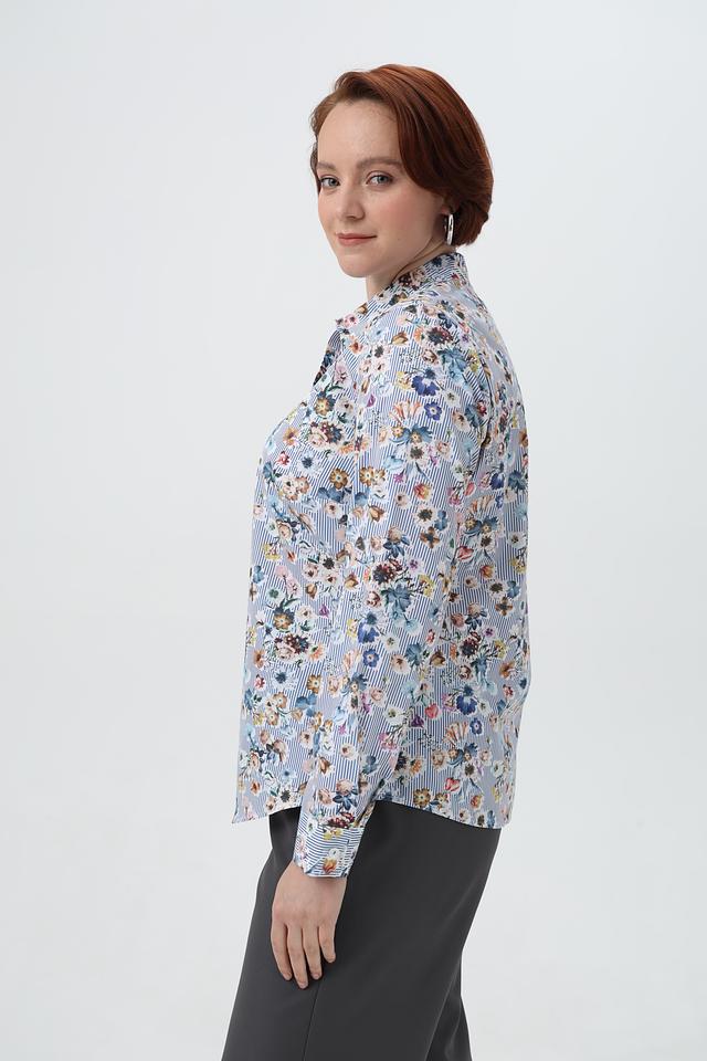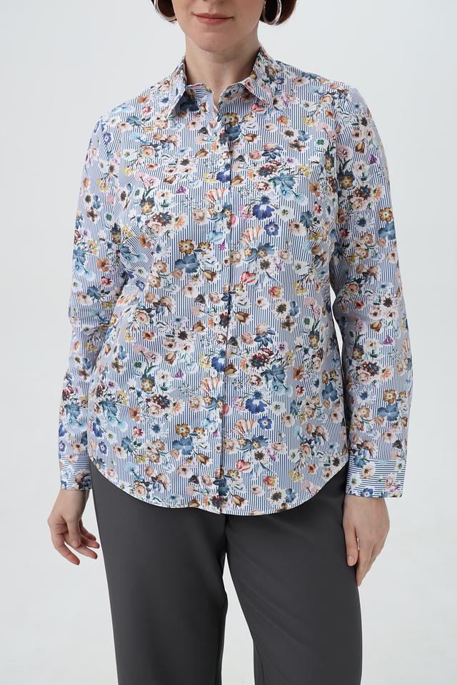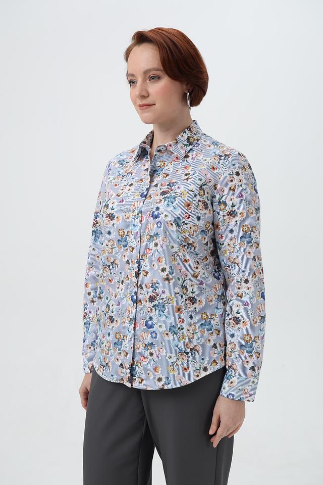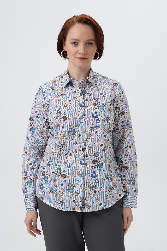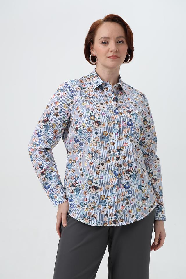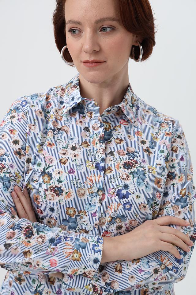 Женская рубашка Sommer mann голубого цвета с нежным цветочным принтом и длинными рукавами. Изготовлена из 100% хлопка, обеспечивающего комфорт и воздухопроницаемость. Состав: хлопок 100%