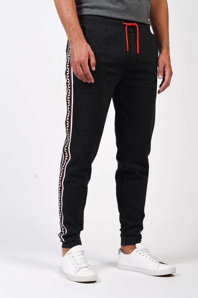 Мужские спортивные брюки Pezzo чёрного цвета с контрастной полосой по бокам. Модель выполнена из мягкого хлопка с добавлением полиэстера для комфорта и износостойкости. Состав: хлопок 88%, полиэстер 12%