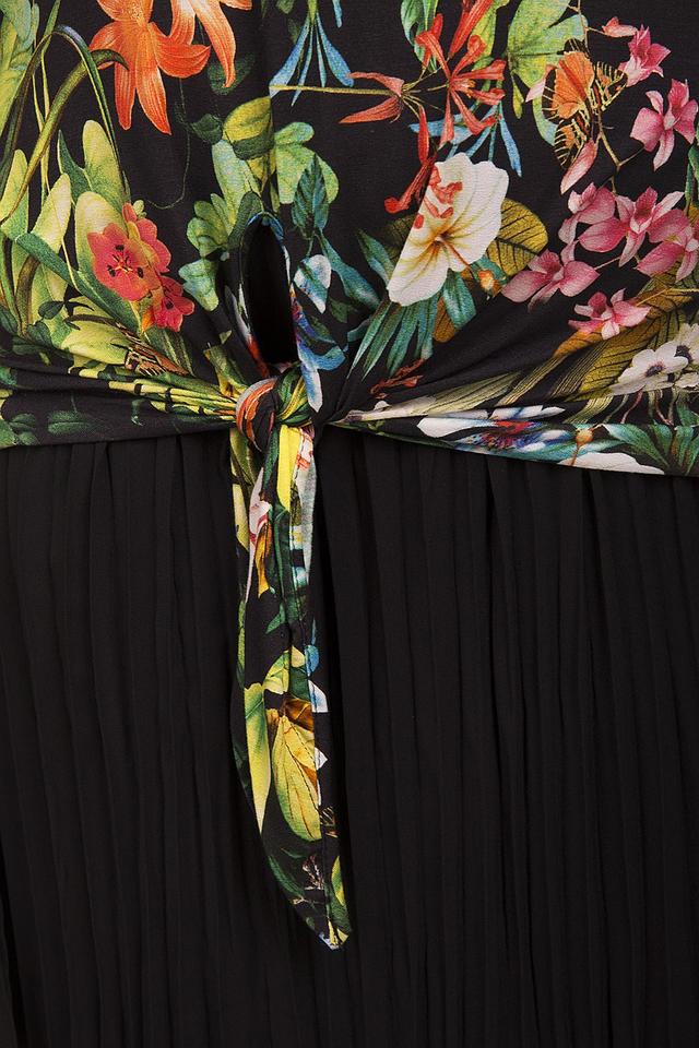 Стильная блуза Steilmann чёрного цвета с ярким цветочным принтом и короткими рукавами. Модель дополнена вставками из сетки и завязками на талии, что придает ей оригинальность и подчеркивает фигуру. Состав: вискоза 94%, эластан 6%
